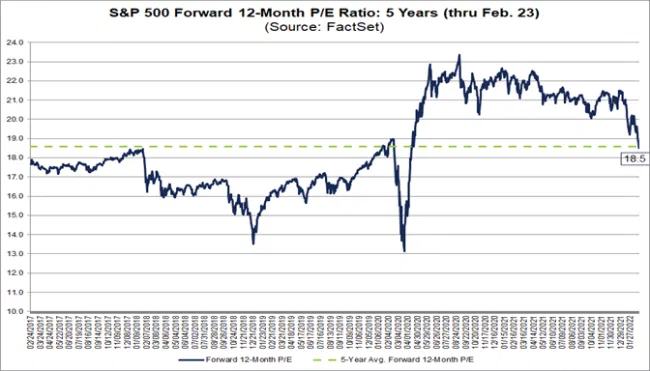 Toutefois, il faut savoir qu'il ne s'agit que d'une moyenne sur cinq ans, qui est légèrement supérieure à la moyenne à long terme. C'est environ 15 P/E pour le S&P 500.