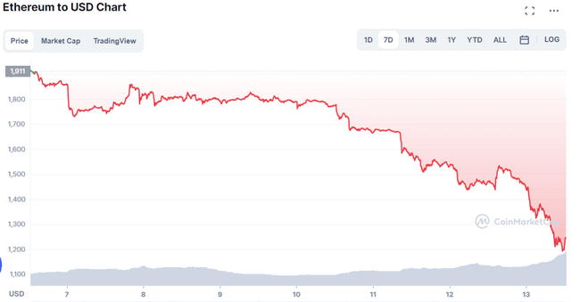 Ethereum $ETHUSD , la deuxième plus grande crypto-monnaie par la capitalisation du marché a connu une grande chute au cours des 7 derniers jours, plongeant de 2000 $ à environ 1200 $. Les investisseurs peuvent penser que c'est déjà le fond et qu'il n'y a pas de raison significative pour une chute encore plus grande, mais peut-être qu'il y en a une.