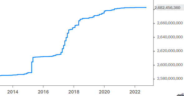 Au sein des dividendes, on peut être frappé par le ratio de distribution, qui est de 231,78% sur les 12 derniers mois. Cela pourrait poser un problème, car le ratio ne devrait normalement pas dépasser 100 %. Toutefois, il pourrait s'agir d'un oubli similaire à celui du producteur de tabac Altria, dont le ratio de distribution extrêmement élevé est dû à des amortissements fiscaux. Je considère les rachats d'actions réguliers comme un atout. L'entreprise a réussi à réduire son nombre d'actions de 3 % depuis 2014.