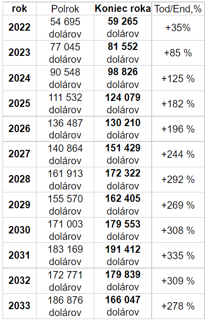Nous pouvons constater qu'il devrait atteindre 190 000 dollars d'ici 2031. Après cela, je suis sûr que beaucoup d'investisseurs vont vendre quelque chose et probablement d'ici 2032 et 2033 la valeur va baisser, mais rien de stupéfiant....