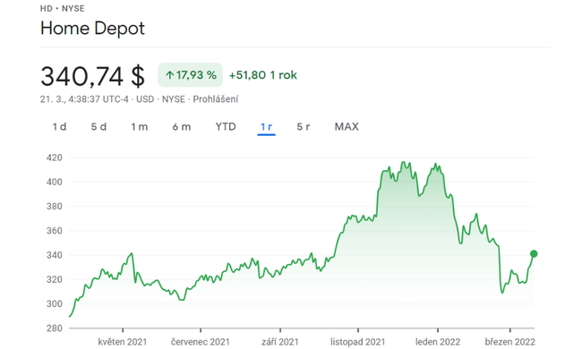 L'action Home Depot $HD a surperformé l'indiceS&P 500 $^GSPC au cours des cinq dernières années , gagnant 121% contre 84% pour le S&P500. Il s'agit d'une valeur sûre qui apporte sécurité et revenu à tout portefeuille, et vous pouvez considérer toute baisse de prix comme une opportunité d'achat.