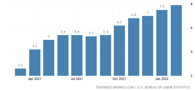 La Fed a relevé ce mois-ci son taux d'intérêt de référence pour la première fois depuis 2018 et s'est engagée à continuer de le relever dans le but de ralentir l'inflation, qui évolue à son rythme le plus rapide depuis quarante ans. Les traders parient que la banque centrale augmentera son taux de référence de 200 points de base d'ici la fin de l'année. Le président du conseil d'administration, Jerome Powell, a déclaré la semaine dernière que la banque centrale était prête à relever les taux de 50 points de base en mai si une telle mesure était nécessaire pour contrôler les pressions sur les prix.