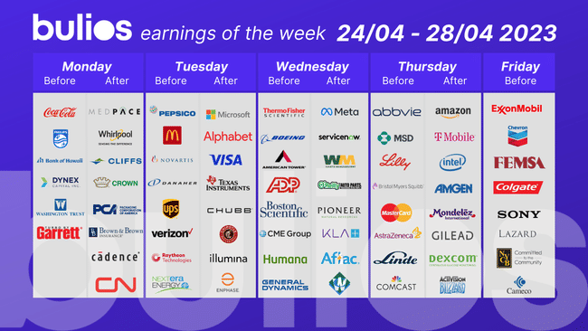 Nous avons décidément beaucoup de choses à attendre de la semaine prochaine. Nous verrons les résultats de nombreux grands noms tels que Coca Cola, Pepsi, McDonald's, Amazon, Microsoft, Google, Verizon, Visa, Meta et bien d'autres encore.